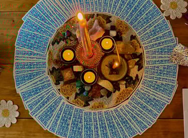 I offer intuitive tarot readings that are recorded and sent to you as a voice note, so you can receive the message in your own time and return to it whenever you need.